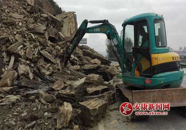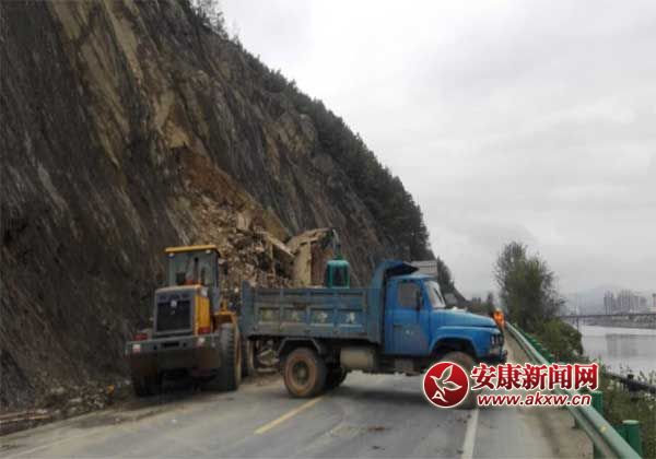 安康新聞網(wǎng)訊 (通訊員 葛松 張歡) 10月29日上午,瀛湖干道K1+050處,一臺挖掘機一臺裝載機正在緊張清除道路塌方。