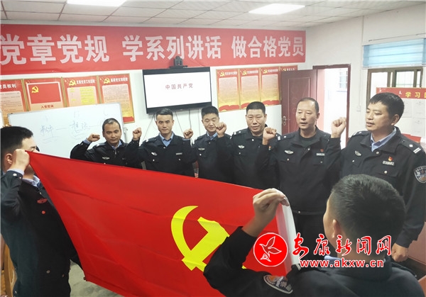 活動(dòng)中,支部書(shū)記為全體黨員講了生動(dòng)的一堂黨課,集體重溫了入黨誓詞,一起觀(guān)看了警示教育片《警鐘》。全體黨員干部面對(duì)鮮紅的黨旗莊嚴(yán)宣誓,重溫入黨誓詞,接受理想信念教育,心靈得到了又一次凈化。最后通過(guò)相互交流學(xué)習(xí)心得、討論各自思想感受,紛紛表示,要珍惜先輩們負(fù)重前行換來(lái)的和諧社會(huì),努力用自己的實(shí)際行動(dòng)扎實(shí)做好本職工作,以高度的政治責(zé)任感,積極為示范區(qū)人民群眾創(chuàng)造安全、暢通、有序的道路交通環(huán)境。