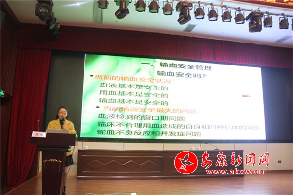 本次培訓特別邀請了西安交通大學第一附屬醫(yī)院輸血科主任王寶燕教授,她結合自身多年工作經(jīng)驗,就《臨床輸血流程管理和臨床案例分析》進行了深入細致的講解。安康市中心醫(yī)院輸血科禹梅老師從血液管理、成分血的輸注、評估等方面做了《臨床輸血實踐與控制》的精彩闡述。安康市中心血站副站長李宏就近年來全市臨床輸血質量管理專項督查中存在的問題進行了一一剖析,通報了各臨床用血單位無償獻血募集指標完成的情況。