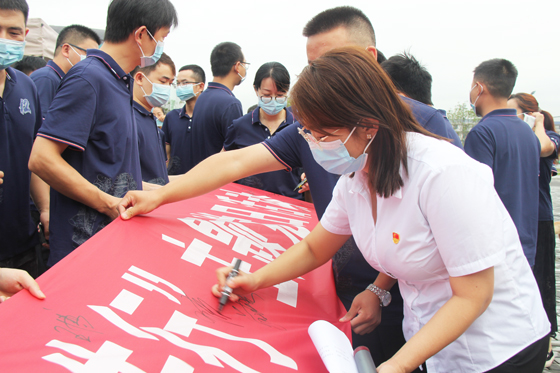 隨后現場職工還在無償獻血動員橫幅上集體簽名留念。