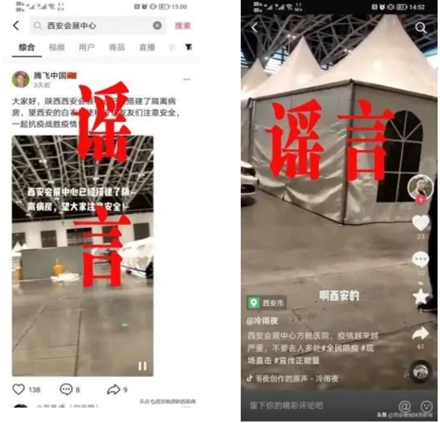 近日,短視頻平臺有網(wǎng)民發(fā)視頻稱“西安國際會展中心正在建方艙醫(yī)院”,經(jīng)核實,該信息為謠言,實為“迪安雷迪”氣膜實驗室,用于核酸檢測工作。