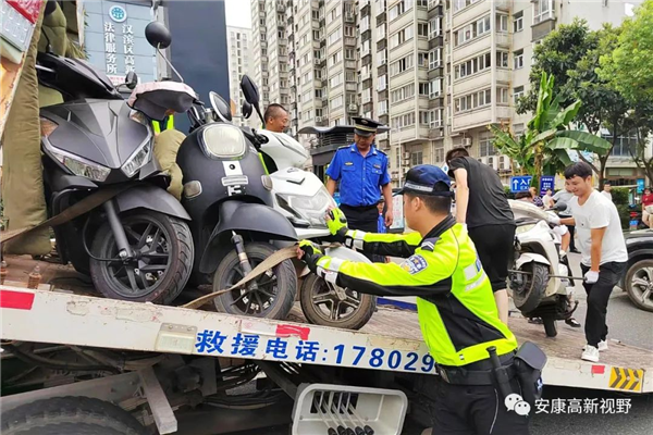 針對(duì)車輛亂停亂放等交通秩序管理問(wèn)題,執(zhí)法人員對(duì)花園大道、秦嶺大道、學(xué)府路、高新四路等主次干道沿線開展全天候整治,并向沿街商戶下發(fā)摩托車、電動(dòng)車規(guī)范停車告知書。對(duì)占用人行道、消防通道、公交泊位等行為進(jìn)行拍照取證后強(qiáng)制拖移。同時(shí),向市民群眾發(fā)放文明交通宣傳彩頁(yè),引導(dǎo)大家自覺摒棄交通陋習(xí)、遵守交通法律法規(guī),安全文明出行。
