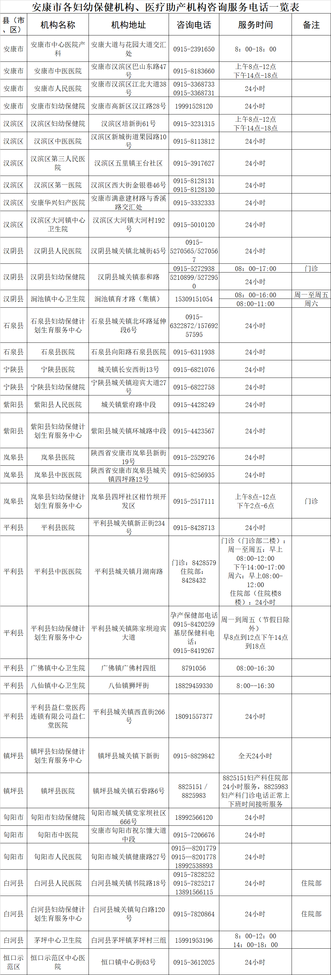 附件:安康市各婦幼保健機構(gòu)、醫(yī)療助產(chǎn)機構(gòu)咨詢服務(wù)電話一覽表
