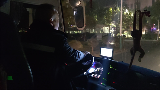 環(huán)顧車內(nèi),面包、牛奶、熱水……這里更像是他們的第二個家。我和司機師傅開玩笑說:“今天出發(fā)夠早的啊,太陽都還沒上班呢?!彼緳C輕描淡寫的說:“這算晚的了,以前去更遠的鎮(zhèn)上,四五點就要出發(fā)。”他雙眼筆直的看向前方,仿佛看見了比路更多的東西,而在我眼里,那不過是車燈照不到盡頭的一片迷霧。