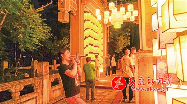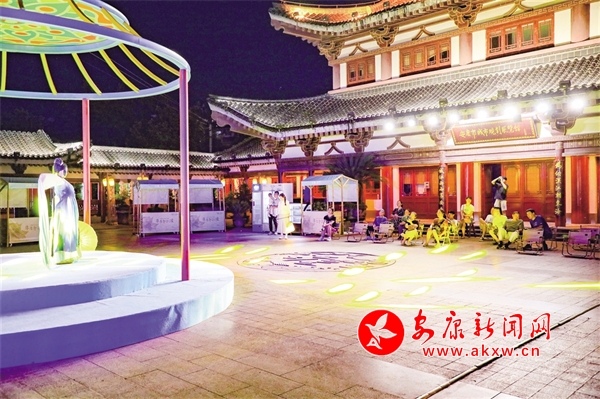 在安瀾樓南側(cè),刻有金州八景的燈籠高高懸掛,穿上漢服,提著燈籠,走向?yàn)懮蠠魰?,感受花燈如晝。移步廊道,徜徉安瀾夜市,感受煥然一新的公園氛圍、琳瑯滿目的文創(chuàng)精品和目不暇接的特色非遺。