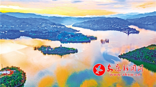 安康位于漢江中上游,秦嶺以南,巴山以北,漢江穿境而過。近日的安康瀛湖,色彩斑斕、美麗如畫,特別是在夕陽(yáng)西下和旭日初升的時(shí)候,格外美麗,如一幅巨大的山水畫鑲嵌在群山懷抱之中,引人入勝。 趙華斌 攝?