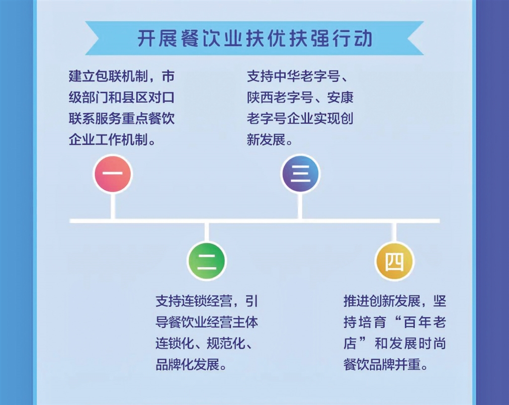 日前,安康市商務(wù)局等11部門聯(lián)合發(fā)布《關(guān)于進一步推進全市餐飲業(yè)高質(zhì)量發(fā)展的實施意見》,本期帶您一圖讀懂其重點任務(wù)。