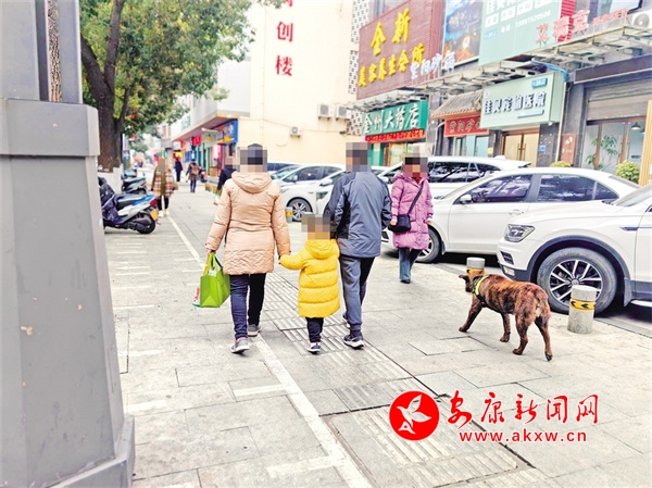 1月30日,安康城區(qū)巴山西路有市民遛狗不栓狗繩。