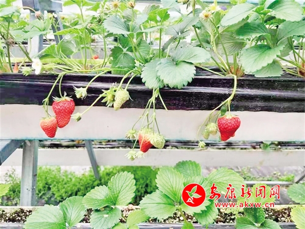 “‘高架草莓’不僅節(jié)約人力,能讓大家冬天也能吃到鮮甜可口的草莓,也不用擔(dān)心降溫、大雪等天氣影響。懸空種植還方便工人以及游客進(jìn)行采摘,許多周邊群眾慕名而來,體驗(yàn)‘開心農(nóng)場(chǎng)’。”園區(qū)技術(shù)員曹峰說。