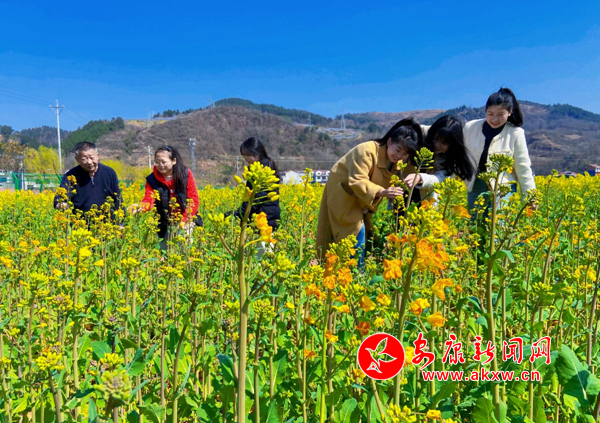 油菜花兒開,歡迎你到漢陰來......走進漢陰縣雙乳千畝荷塘,一朵朵五彩油菜花競相開放,微風(fēng)徐來,花枝搖曳,令人陶醉。前來踏青賞花的游客們對不同顏色的油菜花倍感新奇,一邊觀賞,一邊拍照留念,興奮不已。