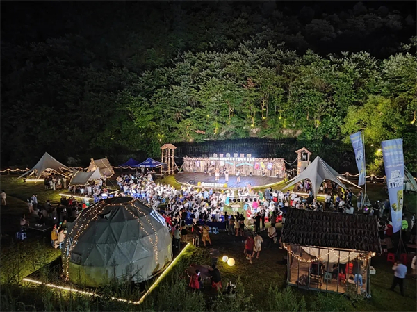 開展篝火音樂晚會活動?;顒悠陂g,常態(tài)化開展各種文化演繹和美食派對等主題活動。
