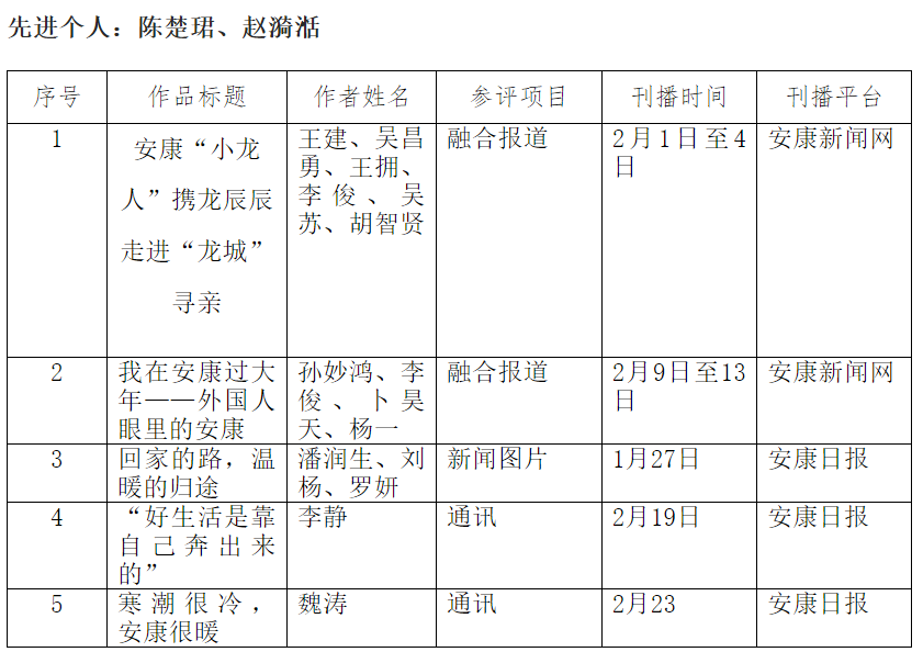 安康日報社擬參評2024年“新春走基層”先進(jìn)個人及新聞作品公示