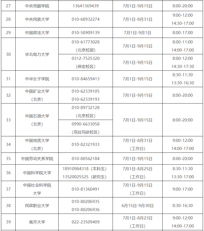 受理時間:7月1日-9月15日(工作日)8:00-12:00 15:00-18:00