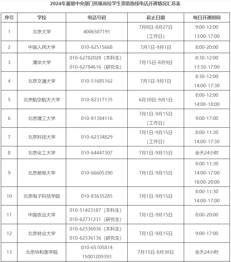 2024年暑期教育部高校學生資助熱線電話7月1日開通