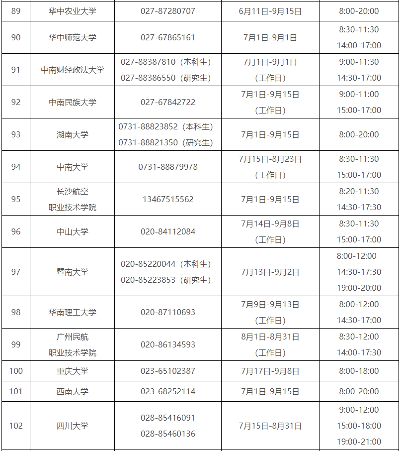 各?。ㄗ灾螀^(qū)、直轄市)和中央部門所屬高校同步開通了熱線電話,電話號碼與開通時間可查看匯總表。