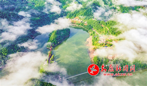 穿過密林,移步水邊,小島早已與一汪碧水融為一體,綠瑩瑩的水環(huán)繞著小島,島以水為鏡,水以島為景。此時的小島猶如一位漂亮的村姑,靜靜地欣賞著水中的倩影。汪汪碧水、陣陣鳥鳴、悠悠藍天,讓人不自覺地斂聲屏氣,生怕打亂這寧靜風(fēng)景,那就只好用心去感受欣賞了。