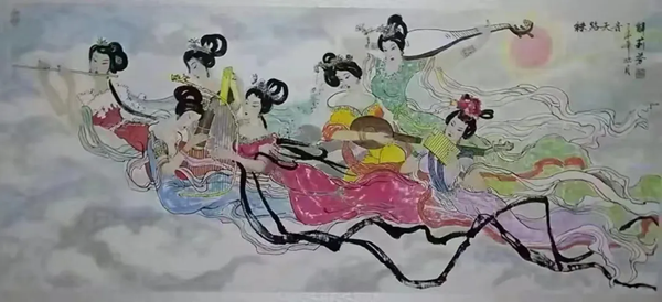 解大姐是陜北人,性格開朗、直率,說話中間或帶出一些濃重的陜北口音。雖說她主業(yè)從于政界,但她微笑的背后卻潛藏著不可掩飾的藝術天賦,揮發(fā)著令人奪目的藝術才情。繁雜的政務工作之余,她創(chuàng)作不輟,堅持不懈,居然在多個藝術門類收獲頗豐,好評連連。寫小說,她寫出幾十萬字的長篇出版發(fā)行;寫劇本,竟拍成了電影予以公映;學國畫,亦讓藝術界的大咖贊口不絕。我雖不才,空有浮名,但深耕藝界多年,對于其中的好賴還能分出一二。我感到,一個人的人品和藝品基本一致,解大姐的藝術,是扎根于她熟悉的陜北大地的藝術,是生長在山峁峁上經歷風霜雨雪的藝術,就像那陜北倔強的疙瘩柳,散發(fā)著對土地對生活的親近和熱情,對人生價值實現(xiàn)的不屈和追求。看到她的國畫新作,有陜北剪紙等民間藝術的滋養(yǎng)和影響,真切而樸實。她的飛天人物系列,泥古而不落窠臼,使我想到疙瘩柳條隨風擺動的婀娜風姿,溫溫潤潤,令人遐思和向往;她的花鳥畫作,使我想到陜北山野一片蒼茫之間,一朵兩朵盛開的山丹丹花,嬌艷得令人不忍觸手;她的山水畫作,又猶如陜北山原上嫩黃的棗花,洋溢著撲面而來的質樸、清新和率真之氣。