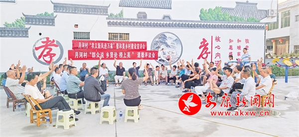 在今年的每一次道德評(píng)議會(huì)上,月河村干部和鄉(xiāng)賢能人都積極宣講村莊發(fā)展規(guī)劃以及孝善行為的重要性,宣講團(tuán)成員詳細(xì)解讀孝義文化,帶動(dòng)村民踴躍參與“五美庭院”創(chuàng)建。在此過(guò)程中,“說(shuō)論亮”道德評(píng)議制度有效運(yùn)行;“群眾說(shuō)”讓大家暢所欲言,把村里的大小事擺到臺(tái)面;“鄉(xiāng)賢論”借助鄉(xiāng)賢的智慧與威望分析問(wèn)題、化解矛盾;“榜上亮”則讓好與壞一目了然,便于群眾監(jiān)督。特別是,為激勵(lì)村民見(jiàn)賢思齊,學(xué)典型、爭(zhēng)先進(jìn)、樹(shù)文明,月河村利用孝義文化長(zhǎng)廊、宣傳欄、道德講堂等載體,把評(píng)選出來(lái)的道德典型事跡“上榜、上墻”,形成示范引領(lǐng)效應(yīng),讓良好道德品質(zhì)看得見(jiàn)、摸得著,進(jìn)一步激發(fā)村民的主人翁意識(shí),讓移風(fēng)易俗的觀念深入人心。
