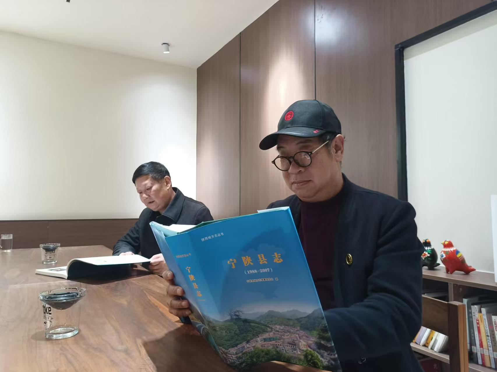 陜西省作家協(xié)會主席團(tuán)顧問、著名作家和谷走向西墻邊的沙發(fā),剛一落座,就順手抽出了《寧陜民歌集》《寧陜廳志》等書,興致勃勃地翻閱著。我見他放在茶上的書中有本《中國子午道》,就從門外請入該書作者、安康著名攝影家王曉群。二人從子午道談到秦直道,說文史,話旅游,興致盎然地建議寧陜縣:聯(lián)手中省市有關(guān)方面,以翻越秦嶺的古道為主線,開發(fā)文旅融合干線,讓更多的人走進(jìn)秦嶺、了解秦嶺,也讓秦嶺這座文化富礦、生態(tài)富礦發(fā)揮更好的作用!