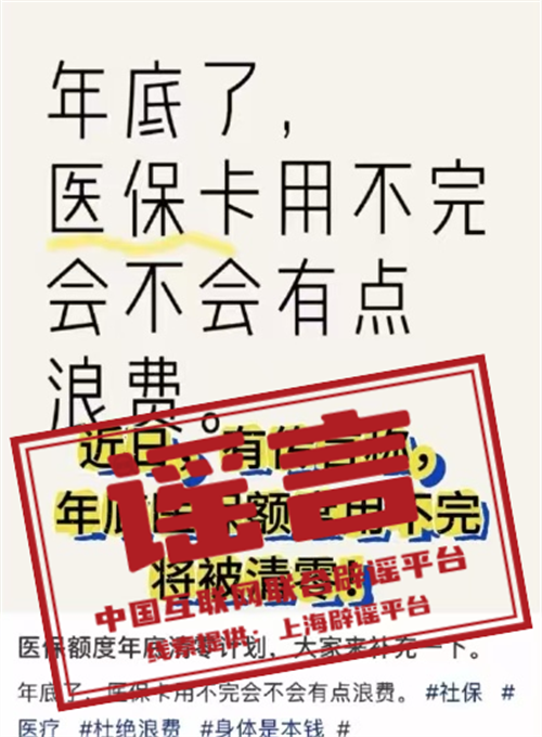 真相:臨近年底,社交平臺(tái)上關(guān)于“醫(yī)保額度”的話題,如“職工門診統(tǒng)籌額度再不用完,12月底就要清零了”“要抓緊時(shí)間用,不然白白浪費(fèi)了”又熱了起來。經(jīng)求證發(fā)現(xiàn),所謂的“年底清零”純屬無稽之談,此前已被多地醫(yī)療保障局公開辟謠。