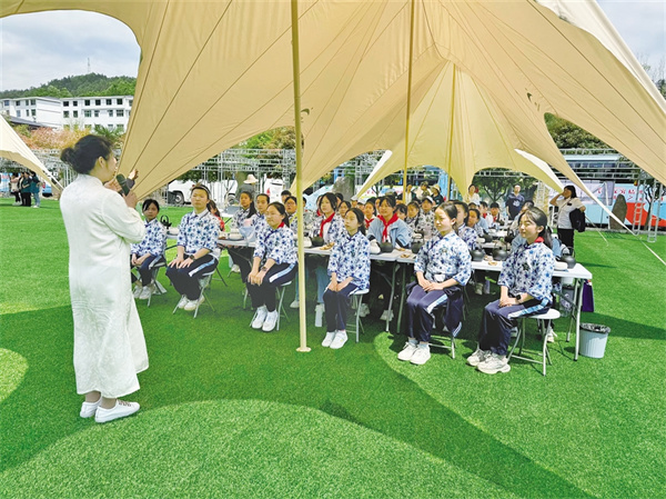 紫陽小學(xué)研學(xué)活動聆聽茶藝課程。劉姝含 攝