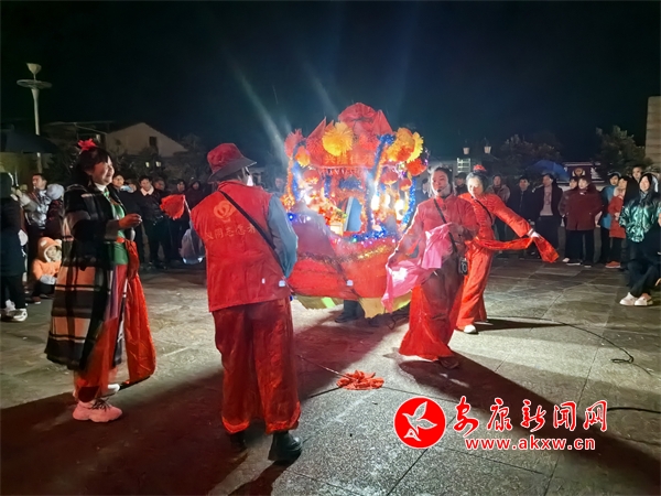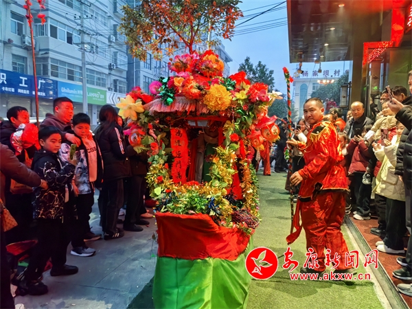在位于漢陰縣平梁鎮(zhèn)的興隆佳苑社區(qū),春節(jié)期間,小區(qū)里處處洋溢著節(jié)日氛圍。夜幕降臨,社區(qū)廣場(chǎng)響起陣陣鑼鼓聲,?;ù硌菡介_(kāi)始。只見(jiàn)表演者雙手提船、配合默契,船體隨著“波浪”旋轉(zhuǎn)、顛簸,身穿喜慶艷麗的服裝、頭戴五彩頭飾的表演人員個(gè)個(gè)精神抖擻,一邊前行,一邊唱著漢陰本地的花鼓戲,祈求來(lái)年風(fēng)調(diào)雨順、福壽安康。翻飛的彩扇、華麗的彩船,精心編排、詼諧幽默的表演,為社區(qū)群眾呈現(xiàn)了一場(chǎng)精彩的視覺(jué)盛宴。