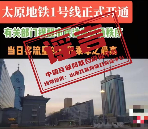 真相:近日,有網(wǎng)民發(fā)布短視頻稱“太原地鐵1號線正式開通,有關(guān)部門提醒市民注意交通秩序,當(dāng)日客流量創(chuàng)世界乘車之最高”。經(jīng)與當(dāng)?shù)亟煌ú块T核實,此信息內(nèi)容不實。該網(wǎng)民行為違反《網(wǎng)絡(luò)信息內(nèi)容生態(tài)治理規(guī)定》第六條第八款規(guī)定,網(wǎng)信部門已將線索移交公安部門進(jìn)一步調(diào)查處理。(來源:“山西網(wǎng)絡(luò)舉報”微信公眾號)
