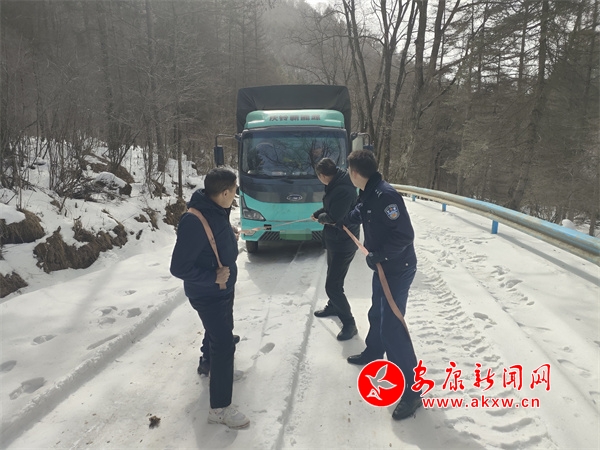 2月19日12時(shí)許,寧陜縣公安局龍王派出所值班民警接到救援電話:有一輛貨車駕駛到太山廟鎮(zhèn)太山村某路段被困,請求救助,接到電話后龍王派出所民輔警迅速趕往事發(fā)地。當(dāng)時(shí)大雪已經(jīng)下了一天,該路段因山路崎嶇坡陡,部分路面結(jié)冰打滑,民警克服天氣不利條件趕到現(xiàn)場。到現(xiàn)場后,民警看見一輛貨車被困在雪地中,民警查看現(xiàn)場環(huán)境后,利用攜帶鐵鍬、拖車?yán)K等救援物資迅速開展工作,經(jīng)過2個(gè)多小時(shí)終于安全將被困車輛牽引至安全區(qū)域。