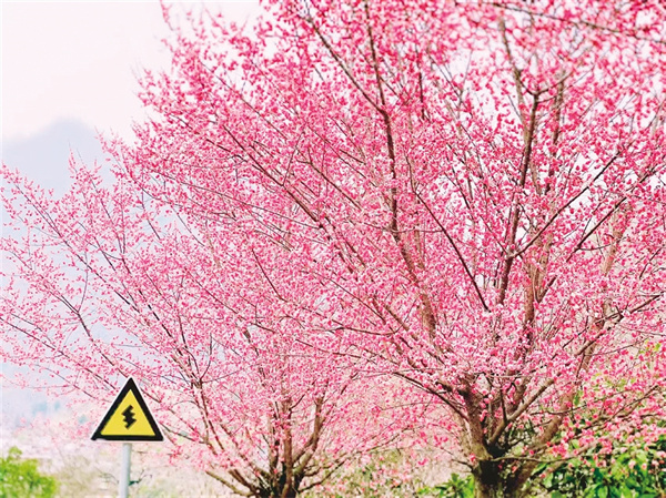 沿著茶山步道拾級(jí)而上,茶農(nóng)采青的竹簍與游人拍照的紗巾在梯田間次第閃現(xiàn)。粉白相間的梅花如云絮般綴滿枝頭,風(fēng)過(guò)處,花瓣簌簌落入茶叢,為嫩綠的新芽染上淡淡馨香。遠(yuǎn)處黛瓦白墻的徽派民居與近處起伏的茶壟構(gòu)成天然畫(huà)框,無(wú)人機(jī)視角下,蜿蜒的茶道如同玉帶纏繞山腰,將紅楓、櫻花、梅林串成斑斕的珠鏈。