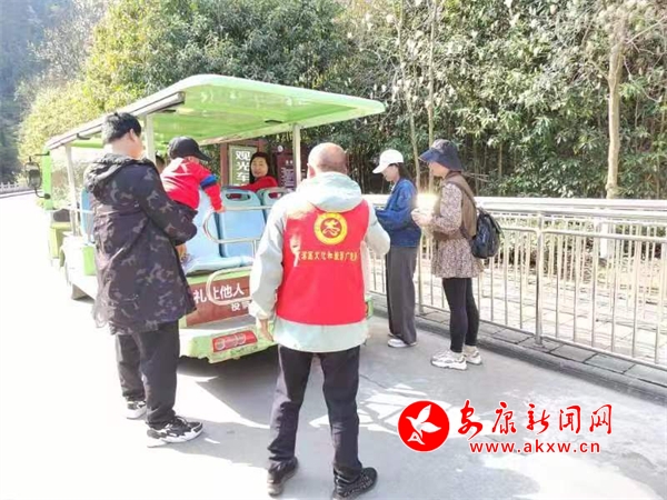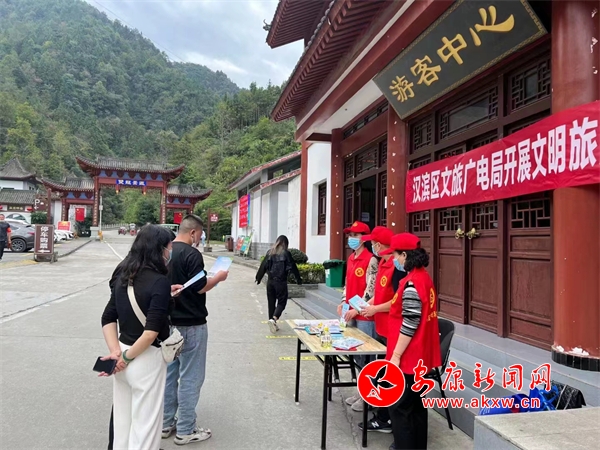 為增強游客的文明旅游意識,近日,漢濱區(qū)文旅廣電局組織志愿者們在雙龍景區(qū)現(xiàn)場向市民游客發(fā)放文明旅游宣傳折頁,宣傳講解文明旅游相關(guān)知識以及應(yīng)當(dāng)遵循的行為規(guī)范,引導(dǎo)游客有序排隊游玩。宣傳彩頁內(nèi)容既包含了安康的歷史文化、自然風(fēng)光介紹,也強調(diào)了保護(hù)環(huán)境等文明旅游具體要求,旨在引導(dǎo)每一位游客成為文明旅游的踐行者和傳播者,從自身做起、從小事做起,共展文明風(fēng)采,共樹文明形象,共享文明旅游好風(fēng)景。(漢濱區(qū)委宣傳部供圖)?