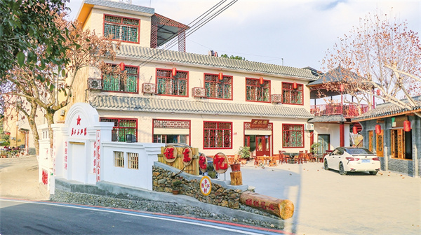 村委會(huì)對(duì)面,村民詹永斌站在院子里,樂呵呵地向前來探親的侄子們介紹起改造前后的變化?!叭ツ赀@時(shí)候,我家側(cè)面還是光禿禿的水泥墻,現(xiàn)在政府有好政策,農(nóng)房改造補(bǔ)貼一萬五,把家里的外墻、屋檐、屋頂全部做了美化,墻面也刷白了,看起來美觀不少?!?/p>