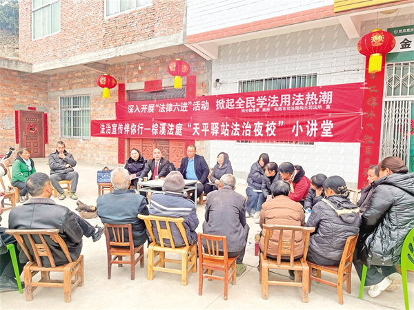 “兒媳婦在微信群罵我,能告她嗎?”“親戚貸款讓我擔(dān)保,會(huì)不會(huì)被坑?”……2月20日晚,棕溪法庭舉辦的“法治夜?!痹陉P(guān)口鎮(zhèn)關(guān)坪社區(qū)的“天平驛站”開講,30余名村民圍坐在一起認(rèn)真聽(tīng)講,并踴躍發(fā)問(wèn)。法官劉強(qiáng)結(jié)合《治安管理處罰法》《民法典》就農(nóng)村群眾普遍關(guān)心的熱點(diǎn)話題進(jìn)行解析,同時(shí)播放方言普法短視頻進(jìn)行普法宣傳。