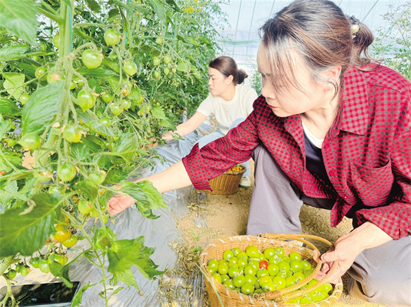 在分揀包裝區(qū),果農(nóng)們將圣女果按顏色、甜度分級(jí)包裝?!扒嗌鸲雀?,適合鮮食;紅色果酸甜適中,主要供應(yīng)餐飲店?!贝迕駝⒋蠼憬榻B,自己以前在外地務(wù)工,現(xiàn)在在家門(mén)口就能上班,每個(gè)月能掙3000多元。在歡樂(lè)采摘區(qū),游客們一邊采摘一邊拍照,發(fā)微信朋友圈展示觀光采摘的樂(lè)趣。