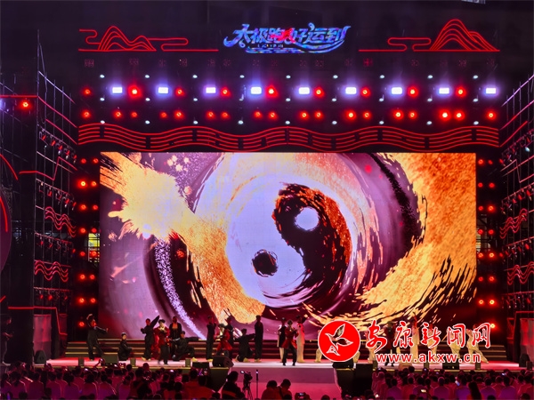 夜幕降臨,開幕式現(xiàn)場美輪美奐、氣勢恢宏。燈光秀、歌舞秀拉開活動帷幕,博得雷鳴般的掌聲。21個鎮(zhèn)代表隊登臺亮相?!盁熁ㄐ恪辫矈Z目,化作多彩光芒,點亮太極城的夜空。伴隨著現(xiàn)場觀眾的激情吶喊,文藝節(jié)目相繼上演,歌伴舞《沖呀!去旬陽》、旬陽好物旬陽非遺推介、舞蹈《舞動長樂紅》、民歌聯(lián)唱《姐不約郎郎不來》、千人復誦《太極·旬陽賦》、太極秀《太極江湖》、千人齊跳《太極舞》等節(jié)目,充分展示了旬陽的文化底蘊、旅游資源、人文風情,掌聲如潮、歡聲如雷。中國內地歌手屠洪剛演唱的歌曲《你》《江山無限》《精忠報國》瞬間將現(xiàn)場氣氛燃爆。