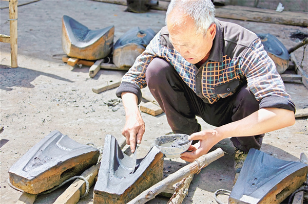 宋祖新的叔祖父是當年鏵廠的“掌勺”師傅之一,在一次次觀看大人們操作中,他也學會了從制模到熔鐵澆鑄一整套鑄鏵技術。隨著農(nóng)業(yè)科技的發(fā)展,傳統(tǒng)的鐵鏵制作工藝逐漸被機械化生產(chǎn)所取代,但在陜南一些山區(qū)坡地仍延續(xù)著犁鏵耕作方式?!扒靶┠辏鄶?shù)人都選擇外出務工,種地的少,好多年沒有開爐鑄鏵了,很多年輕人都沒有親自體驗過制作過程,聽說我們這兒又開始鑄鏵,連縣城的人都趕來看稀奇!”宋祖新說。