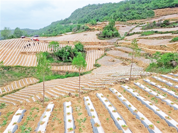 離開錢河梁,走進(jìn)海棠寺村的梯田里,種煙大戶吳義剛正迎著晨曦帶上20余名村民搶墑移栽。23年的種煙歲月在他臉上刻下溝壑,也沉淀出“致富良經(jīng)”。他瞇著眼睛笑著說:“去年新種的80畝煙田毛收入24萬,今年?duì)幦≡俣噘嶞c(diǎn),給孩子換臺(tái)好車?!碑?dāng)目光撫過嫩綠的煙苗,手掌摩擦著滴灌管道,吳義剛驀然間變得激動(dòng):“雖然今春干旱嚴(yán)重,但是政府配發(fā)的抗旱設(shè)備讓移栽成活率大大提升,我們的心血總算沒有白費(fèi)。”村支部書記劉登平頂著烈日算起產(chǎn)業(yè)增收賬:“今年450畝煙田已基本栽完,11個(gè)大戶帶著小戶干,戶均增收能破萬元。”
