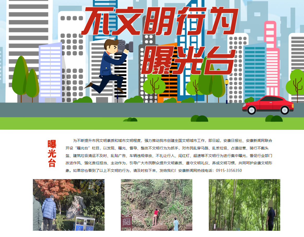 安康新聞網(wǎng)繼續(xù)充分發(fā)揮輿情監(jiān)測和輿論監(jiān)督作用,以高度負(fù)責(zé)的態(tài)度,及時(shí)監(jiān)測上報(bào)重大輿情信息。開設(shè)《不文明行為曝光臺(tái)》輿論監(jiān)督專欄,集中曝光身邊的不文明現(xiàn)象、行為,發(fā)布消息報(bào)道19篇,引導(dǎo)市民群眾自覺規(guī)范文明行為,主動(dòng)融入城市文明創(chuàng)建熱潮,為提升市民文明素質(zhì)和城市文明程度貢獻(xiàn)媒體力量,體現(xiàn)地方黨媒的責(zé)任與擔(dān)當(dāng)。