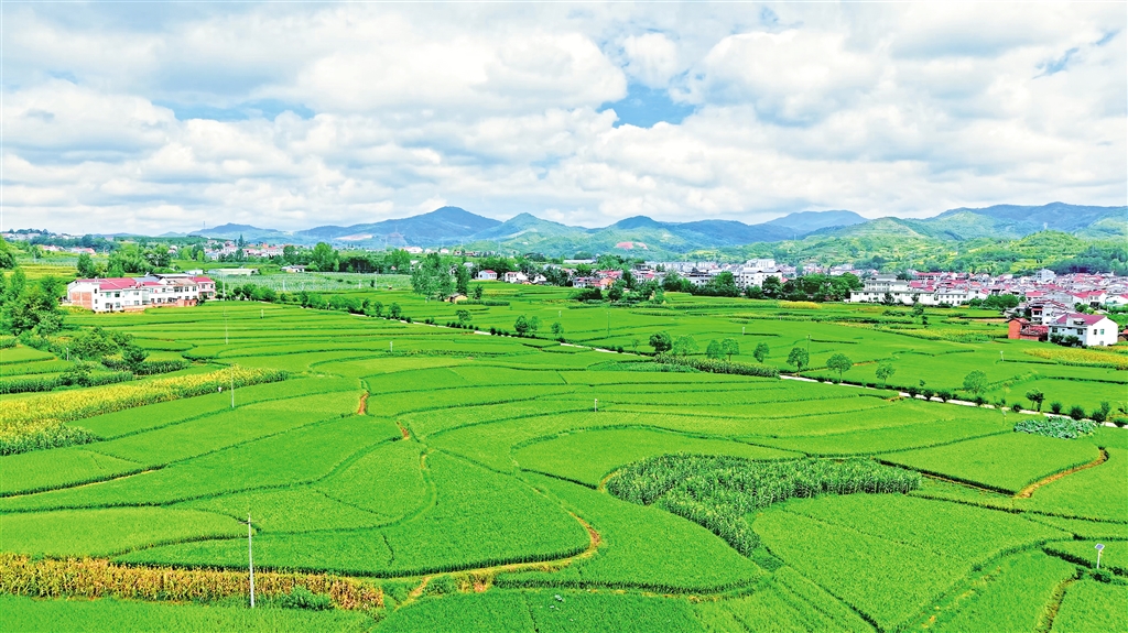 在漢陰縣平梁鎮(zhèn)新河村,連片的綠色稻田與藍(lán)天白云相映成趣,勾勒出一幅生機盎然的田園畫卷。王建霞 黃智發(fā) 攝