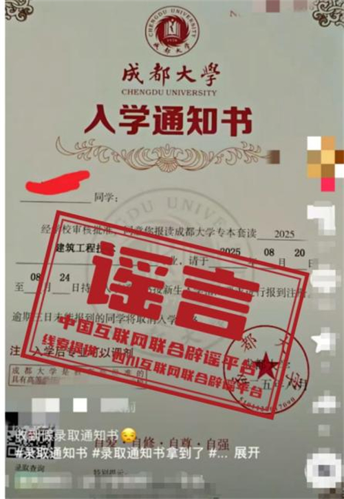 教育部多次提醒,部分機構和個人打著普通高等學歷教育幌子,實際卻為自考助學、網絡教育等其他教育形式,或進行虛假宣傳。如未通過高考招生錄取獲得正式通知書,無法注冊普通高校正式學籍,也無法取得普通高等學校學歷證書。考生及家長應通過正規(guī)渠道核驗錄取信息,嚴格保護個人信息,防止被不法分子利用。(來源:四川互聯網舉報辟謠平臺、成都網絡辟謠)