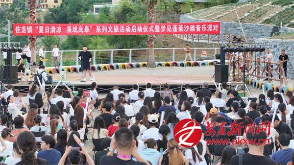 佐龍鎮(zhèn)黨委、政府因勢利導(dǎo),開發(fā)了蓬萊仙境景區(qū)及馬宗村民宿集群,又把河灣變成了露天公共文化場所。他們舉辦的沙灘音樂節(jié),邀請本地的音樂舞蹈愛好者駐場,鼓勵(lì)當(dāng)?shù)厝罕姟⑼鈦碛慰蛥⑴c,以參與活動、宣傳活動的數(shù)量打卡積分,兌換文創(chuàng)產(chǎn)品和文化禮品。
