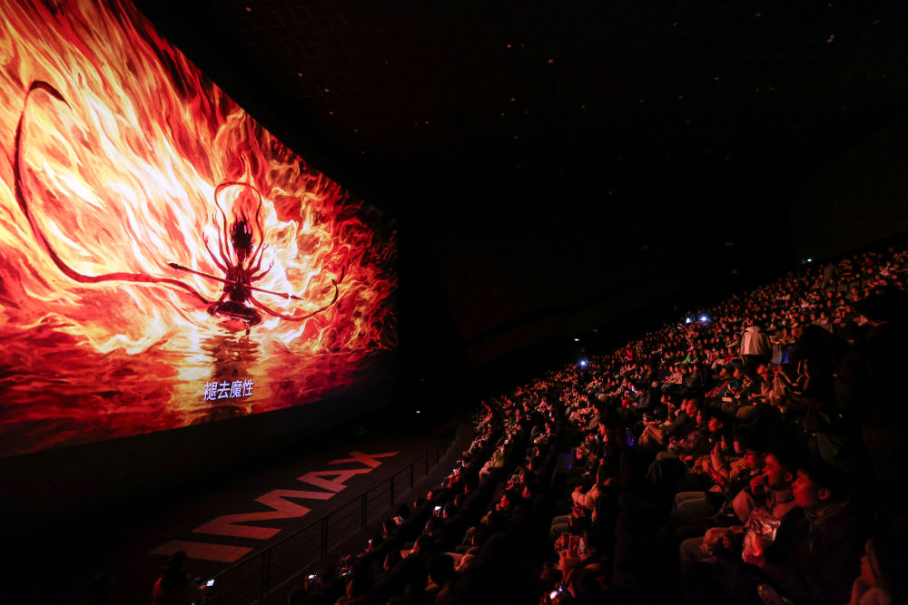 2025年2月25日,觀眾在貴陽越界影城IMAX影廳內觀看電影《哪吒之魔童鬧?!?。動畫電影《哪吒之魔童鬧?!纷?月29日上映后票房一路高歌猛進,僅用8天便登頂中國影史票房榜,隨后成為全球單一市場票房冠軍、全球動畫電影票房冠軍。2025年以來,國家電影局等相繼啟動“跟著電影品美食”“跟著電影去旅游”“中國電影消費年”活動,充分發(fā)揮電影對提振消費的積極作用;各地文旅部門等通過發(fā)布觀影消費券、舉辦主題活動等形式推動影旅融合,發(fā)展票根經(jīng)濟。