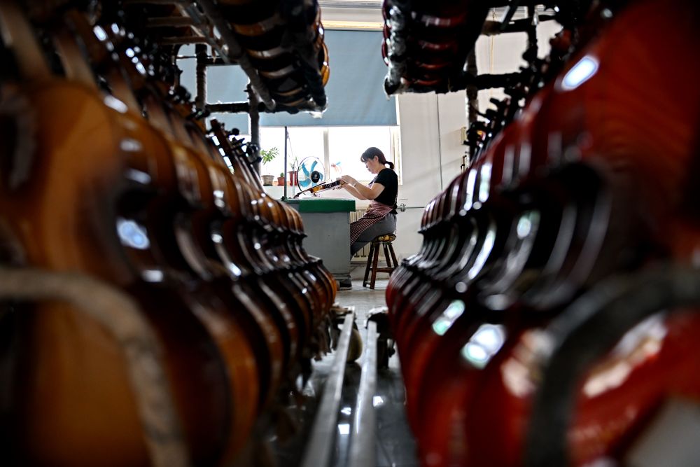 2025年5月28日,河北省武強縣一家樂器生產(chǎn)企業(yè)的工人在制作尤克里里。武強縣樂器產(chǎn)業(yè)歷經(jīng)30余年的發(fā)展,形成擁有超過150家企業(yè)、從業(yè)人員萬余人的產(chǎn)業(yè)集群,產(chǎn)品覆蓋100多個品種、400多種規(guī)格。近年來,武強縣依托樂器文化產(chǎn)業(yè)資源,打造集樂器加工、樂器體驗、音樂展演和休閑度假等業(yè)態(tài)為一體的周窩音樂小鎮(zhèn),同時創(chuàng)新“樂器+”鄉(xiāng)村振興模式,持續(xù)增強樂器產(chǎn)業(yè)的富民強縣作用。2024年武強縣樂器產(chǎn)業(yè)實現(xiàn)營收23.8億元,旅游收入超10億元。