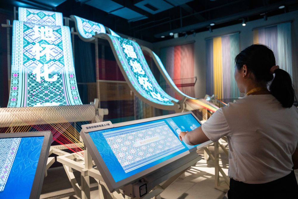 2025年9月16日,游客在湖南省懷化市五溪非遺園體驗數(shù)字化織錦。五溪非遺園于2025年5月正式開園,包含非遺廣場、數(shù)字體驗空間和研學工坊三大板塊,運用VR、AR、全息投影等技術打造42個沉浸式非遺體驗項目。目前,懷化以五溪非遺園為抓手,推出非遺主題研學項目、開發(fā)深度互動項目,構筑特色文化產(chǎn)業(yè)體系,吸引更多人了解、學習非遺,讓傳統(tǒng)技藝成為城市發(fā)展的文化動力。