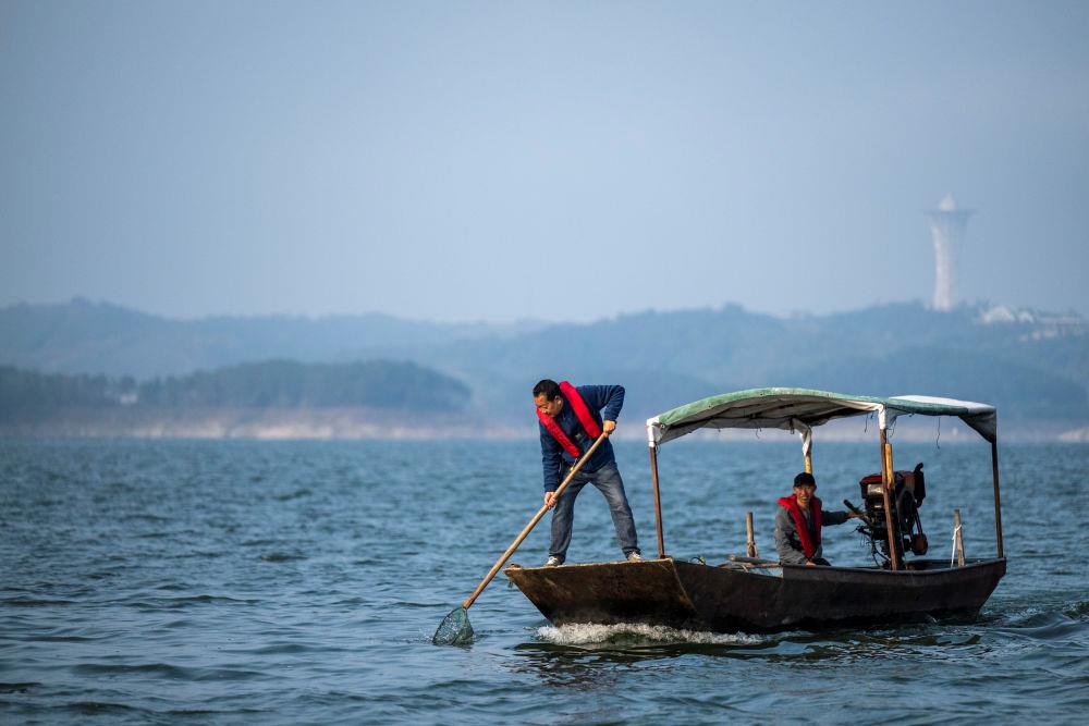 △2024年10月28日,湖北十堰丹江口清漂隊(duì)隊(duì)員在庫(kù)區(qū)進(jìn)行清漂作業(yè)。2023年,丹江口成立“小水滴”守水護(hù)水志愿服務(wù)隊(duì),越來(lái)越多人加入守水護(hù)水行列 。