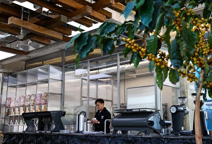 2025年12月10日,旅居云南的韓君瑋在位于昆明的南來盛咖啡店內(nèi)制作咖啡。韓君瑋自清華大學(xué)畢業(yè)后,已在咖啡行業(yè)耕耘十余年。2024年,他受聘成為云南一家老字號咖啡品牌的品牌總顧問,從此投身到云南咖啡的產(chǎn)品研發(fā)和品牌推廣工作中。一年多來,他每月都會來到昆明,短則幾天,長則數(shù)周,開啟了一種“半旅居、半工作”的生活模式?!霸颇巷L(fēng)景優(yōu)美、氣候宜人,我很享受這樣的狀態(tài)?!表n君瑋說。