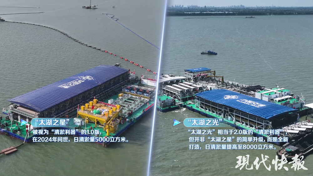 未來(lái)6年內(nèi),“太湖之光”在宜興太湖水域?qū)⑼瓿沙f(wàn)立方米的清淤任務(wù),相當(dāng)于為太湖“減負(fù)”約4000個(gè)標(biāo)準(zhǔn)游泳池的淤泥量。同時(shí),“太湖之光”各艘模塊船可靈活組合、動(dòng)態(tài)調(diào)動(dòng),適配全國(guó)多個(gè)平原淺水型湖泊的治理需求。