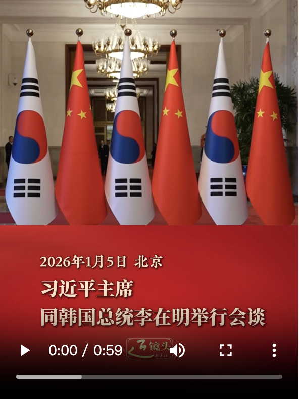 1月5日下午,國家主席習(xí)近平在北京人民大會堂同來華進(jìn)行國事訪問的韓國總統(tǒng)李在明舉行會談。去年11月1日,習(xí)近平主席同李在明總統(tǒng)在韓國慶州舉行會談。時隔短短兩個多月,中韓兩國元首實現(xiàn)互訪。