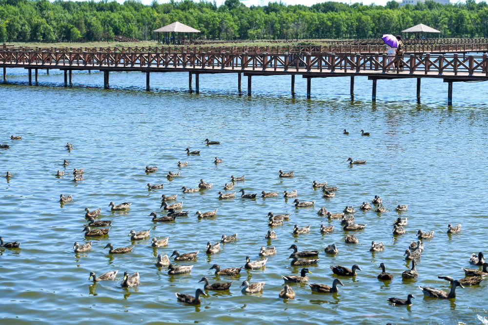 ??2024年8月26日,游客在查干湖野鴨島游覽。截至2025年5月9日,查干湖實(shí)施濕地保護(hù)與恢復(fù)項(xiàng)目24個(gè),保護(hù)區(qū)濕地面積達(dá)517.2平方公里,成為全球九大候鳥(niǎo)遷徙路線的“能量補(bǔ)給站”。隨著觀鳥(niǎo)、拍鳥(niǎo)熱潮興起,“觀鳥(niǎo)經(jīng)濟(jì)”為當(dāng)?shù)匚穆米⑷胄禄盍Α?/span>