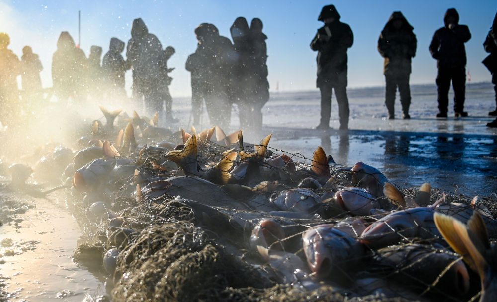 ??2021年12月26日,游客在查干湖冰面上觀看冬捕。近年來(lái),查干湖在保護(hù)生態(tài)環(huán)境的基礎(chǔ)上,推動(dòng)冬捕的可持續(xù)發(fā)展,通過(guò)科學(xué)規(guī)劃捕撈量、加強(qiáng)漁業(yè)資源管理等措施,確保查干湖漁業(yè)資源的穩(wěn)定增長(zhǎng)。