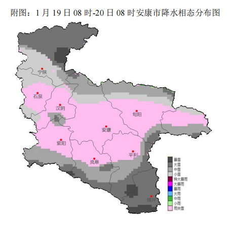 根據(jù)最新氣象觀測資料和數(shù)值模式分析,經(jīng)省市會商研判,預計今天夜間至21日我市有雨雪寒潮天氣,強雨雪時段為19日白天,巴山沿線部分地方有凍雨,川道河谷地區(qū)以小雨或雨夾雪為主,中高山地區(qū)雨夾雪轉(zhuǎn)小到中雪,秦巴山區(qū)及東部高山局地大到暴雪,20及21日白天全市大部仍有間歇性弱雨雪天氣。過程累計降水量:全市大部5~8毫米,東部局地超過12毫米,高山地區(qū)新增積雪深度可達3~12厘米。今天夜間至22日氣溫持續(xù)走低,過程全市大部平均氣溫下降8~10℃。22日雨雪天氣結(jié)束,受前期雨雪天氣和冷空氣持續(xù)影響,氣溫仍較低,預計最低氣溫將出現(xiàn)在22日或23日清晨,川道地區(qū)-5~-2℃,中高山地區(qū)-10~-6℃,局地低于-12℃。過程期間全市大部平均風力3~4級,山區(qū)局地有6級或以上陣風。